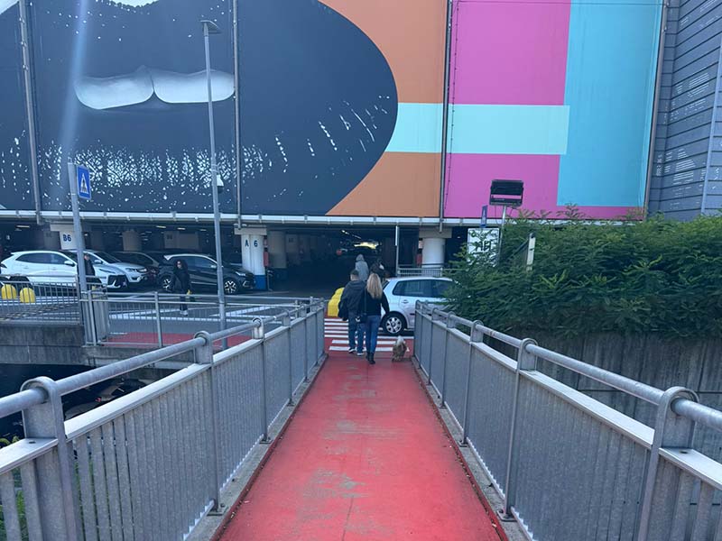 - Dal sottopassaggio dell'Orio Center segui la striscia rossa per pochi metri e raggiungi il posto A8. La navetta di IVM Parking ti attenderà per riaccompagnari in parcheggio, dove effettuerai un rapido check-out e procederai al ritiro della tua auto.